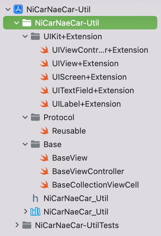 나는 BaseView/BaseViewController 등도 Util Framework로 분리했고, 화면전환 코드도 해당 프레임워크 속 UIKit+Extension으로 분리했기 때문에 대부분의 ViewController에서 NiCarNaeCar_Util 를 import 해서 사용하고 있다.