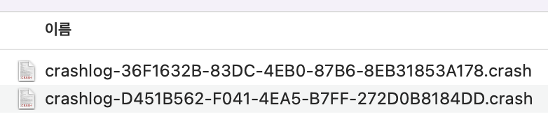 그러면 이렇게 두가지 파일이 .crash 로 변환된 것을 확인할 수 있다.