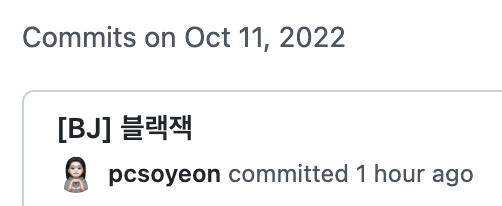 이렇게 [BJ]로 작성해서 커밋을 했는데, 백준의 경우는 .. Backjoon Online Judge이기 때문에 .. BOJ로 커밋을 했어야 했다 ..