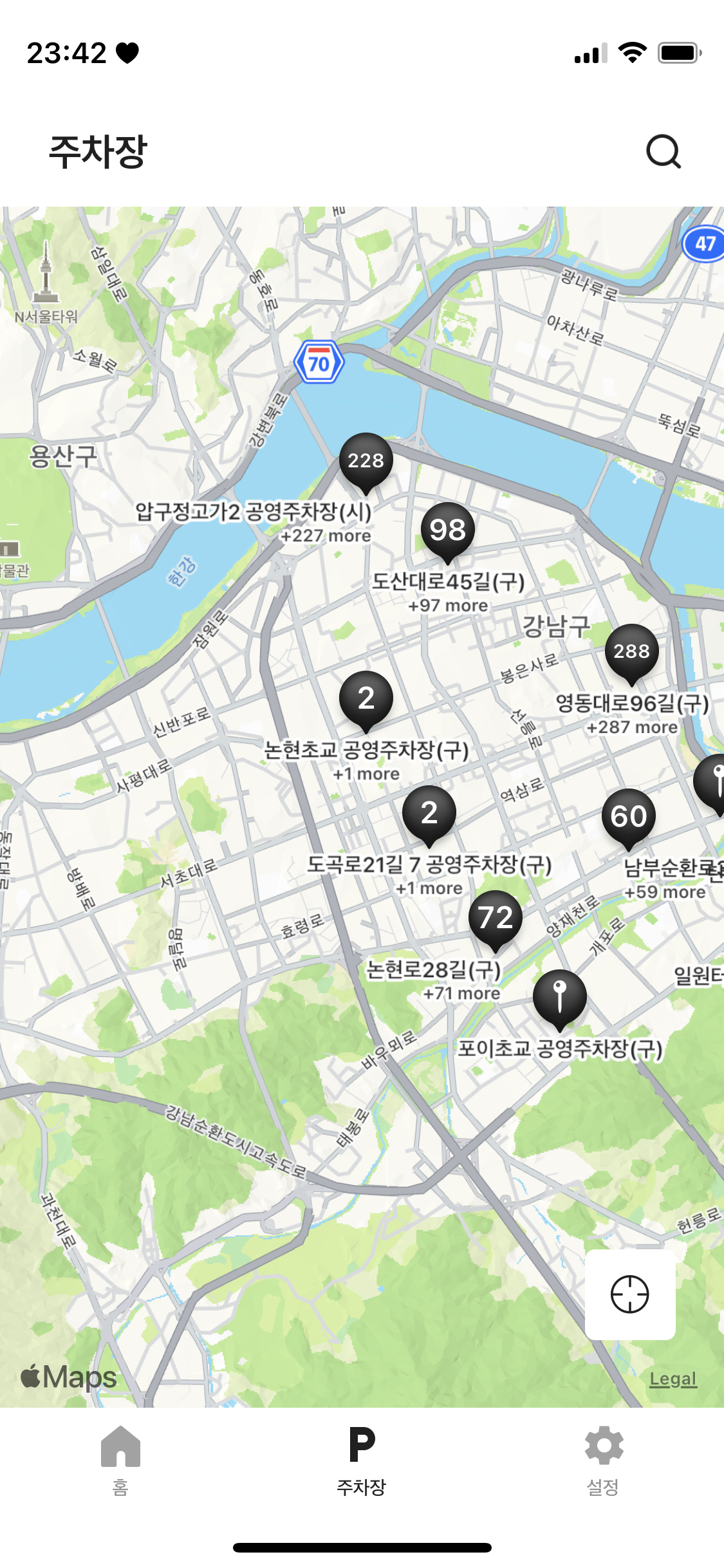 니카내카 1.2.0 버전의 업데이트 사항 중 하나는 공영주차장 정보를 제공하는 것이다.